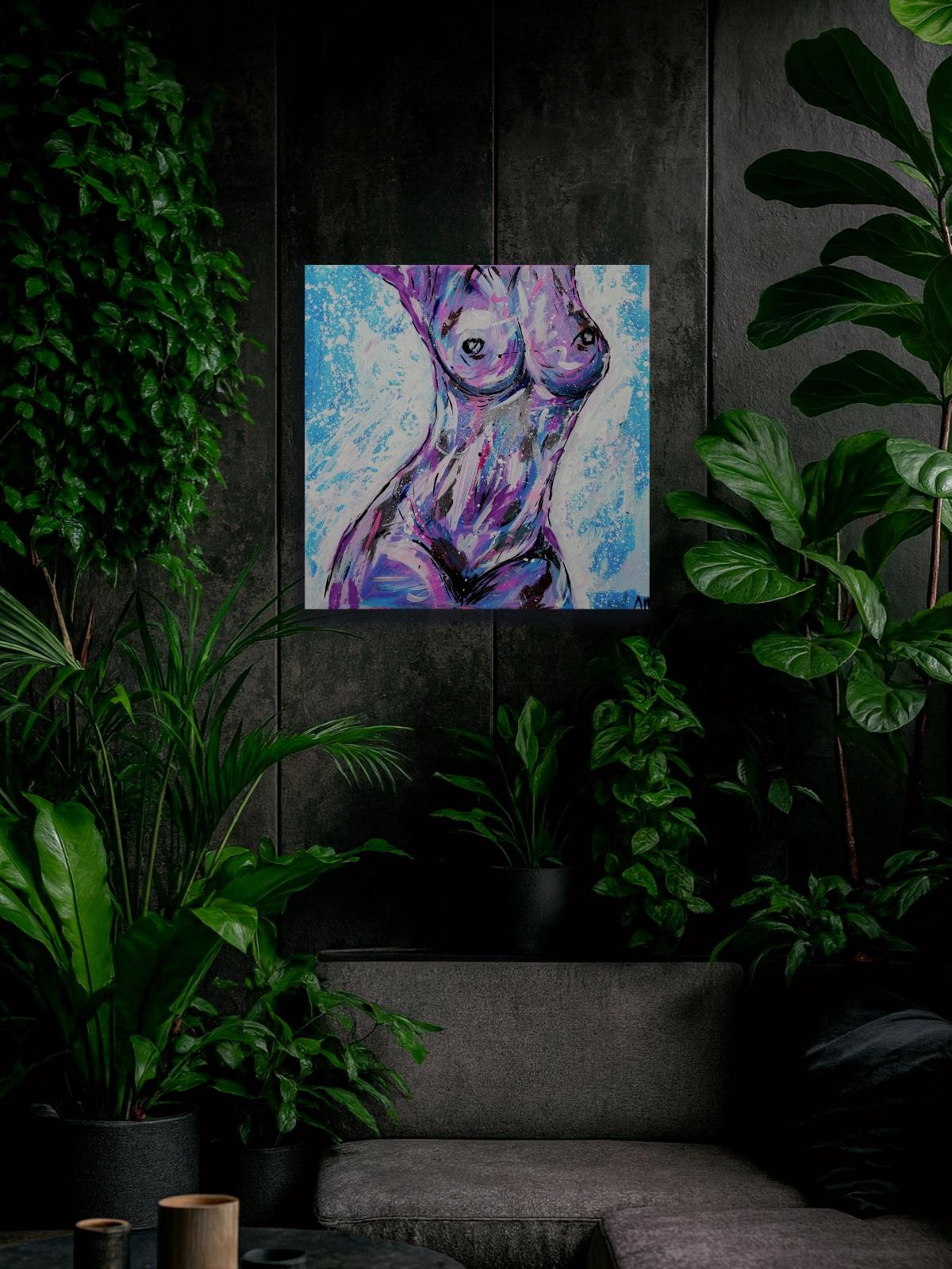 Это не просто ню. Это визуальный взрыв о том, как нежность и глубина желания смело встречаются на одном холсте. Художник передает неконтролируемую энергию, которая возникает, когда мы решаем жить сейчас без комплексов и рамок. Пусть эта картина напоминает вам о вашей внутренней свободе и силе желания.