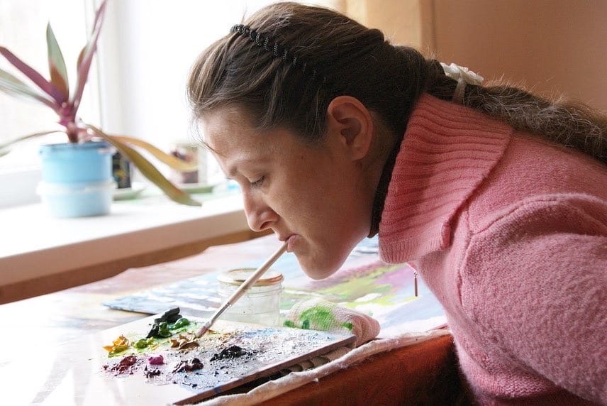 Рисовать традиционным способом не получалось, т.к. руки Натальи частично парализованы. Попытка за попыткой, через боль девушка пыталась найти способ. Так у неё появилась идея начать рисовать, зажимая кисть зубами.