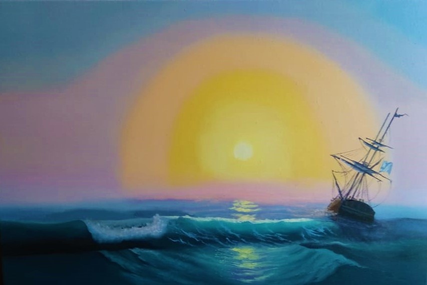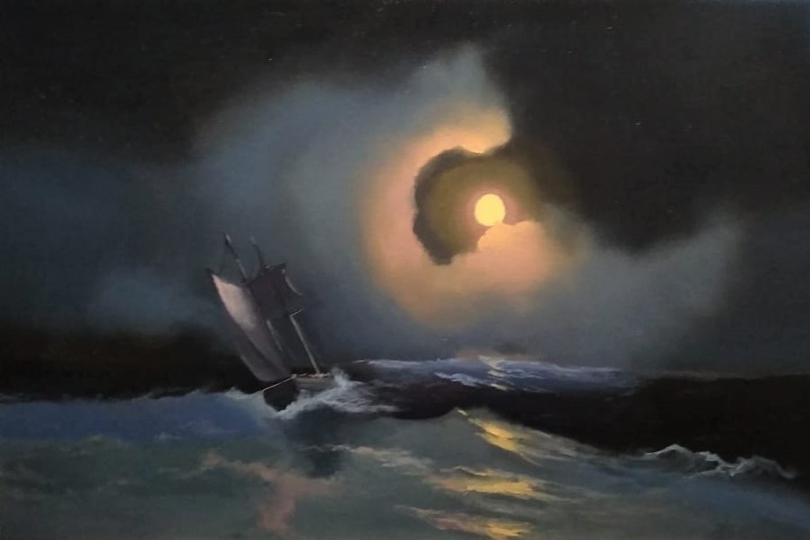 Буря на море лунной ночью